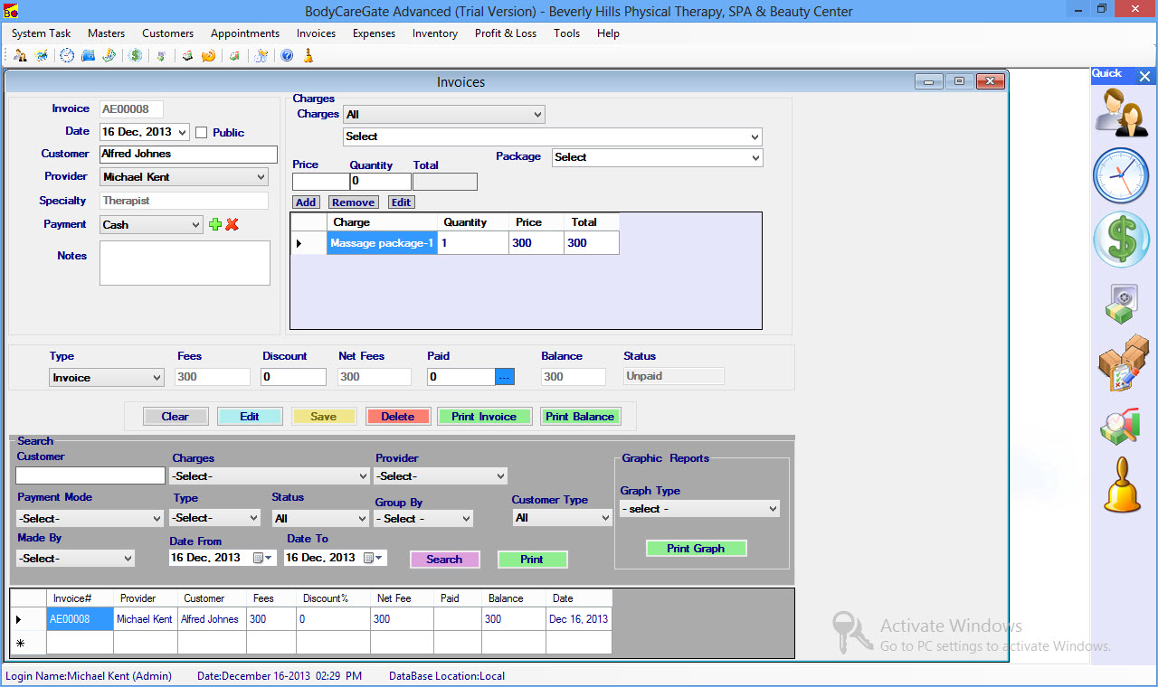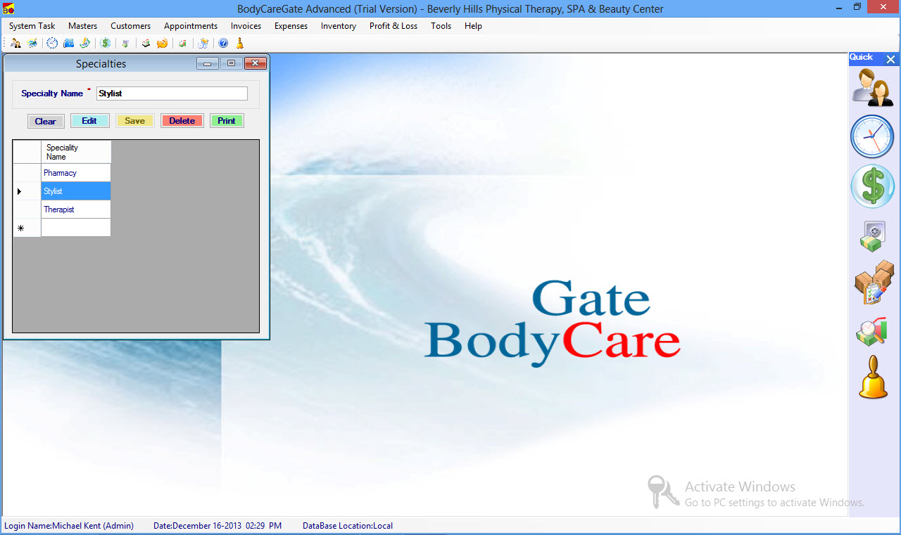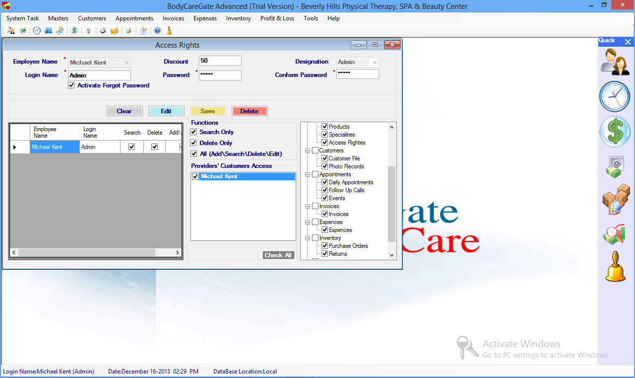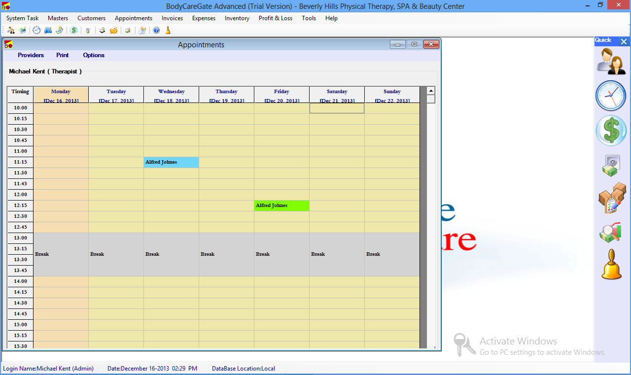 برنامج إدارة صالونات التجميل ، إدارة العلاج بالتدليك