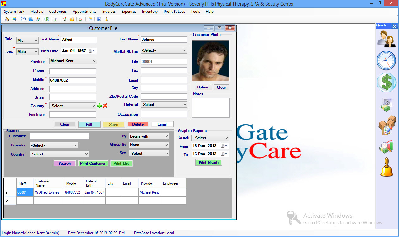 بدى كير جيت عبارة عن برنامج برنامج إدارة صالونات التجميل  ، برنامج العلاج بالتدليك ، يوفر واجهة Windows سهلة الاستخدام تتميز بتكامل سجلات العملاء ، جدولة المواعيد ، الفواتير ، الفواتير ، تتبع المستحقات ، النفقات ، المخزون مع أوامر الشراء ، أوامر المبيعات وإنشاء تقارير مخصصة و تقارير الجرافيك.