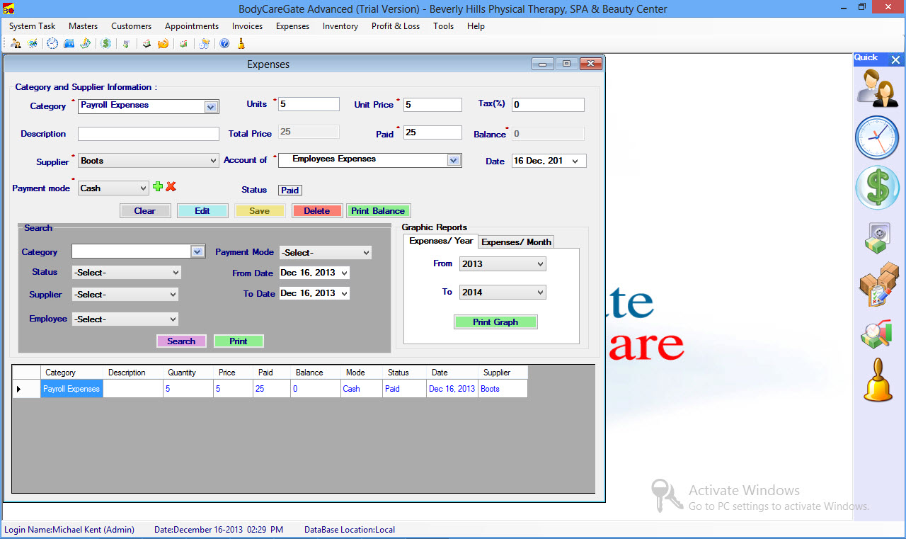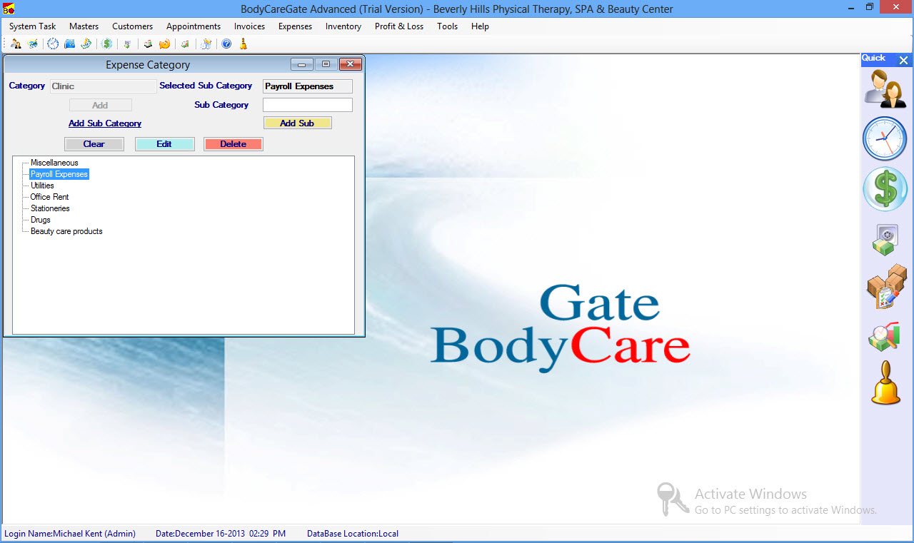 Add, Edit & Delete Practice Expenses / category & sub-category