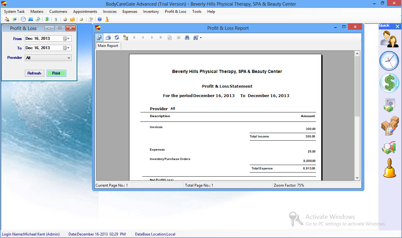 View & Print daily, monthly & yearly doctor Profits & Losses