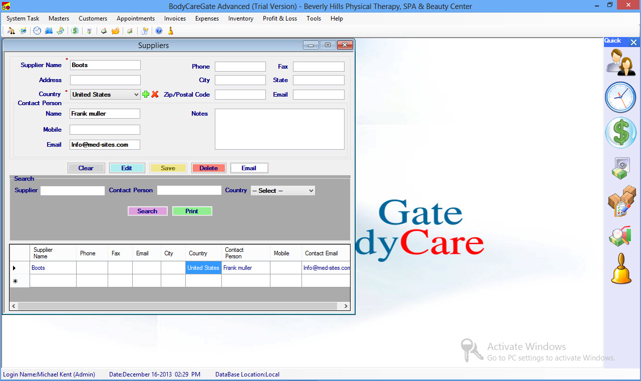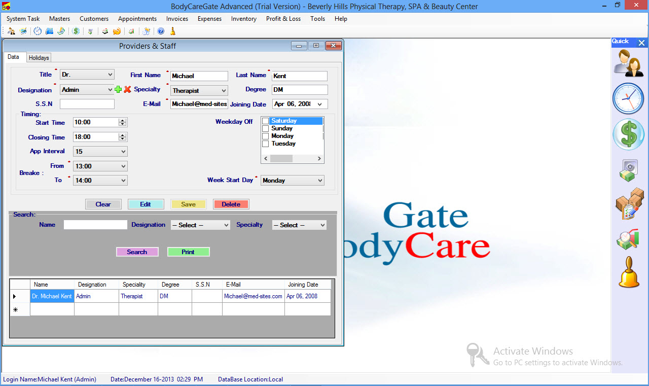 بدى كير جيت هو ميسور التكلفة (99 دولارًا أمريكيًا) ، برنامج تجميل وسبا متعدد المستخدمين سهل وبسيط ، برنامج العلاج بالتدليك ، للممارسة الصغيرة الكبيرة التي تُمكِّن أعمالك من خلال إنشاء نظام مناسب فريد يلبي احتياجات عملك يحتوي على جميع الموارد المالية ، العناصر العلاجية والتشغيلية لممارسة ناجحة على التوالي.
