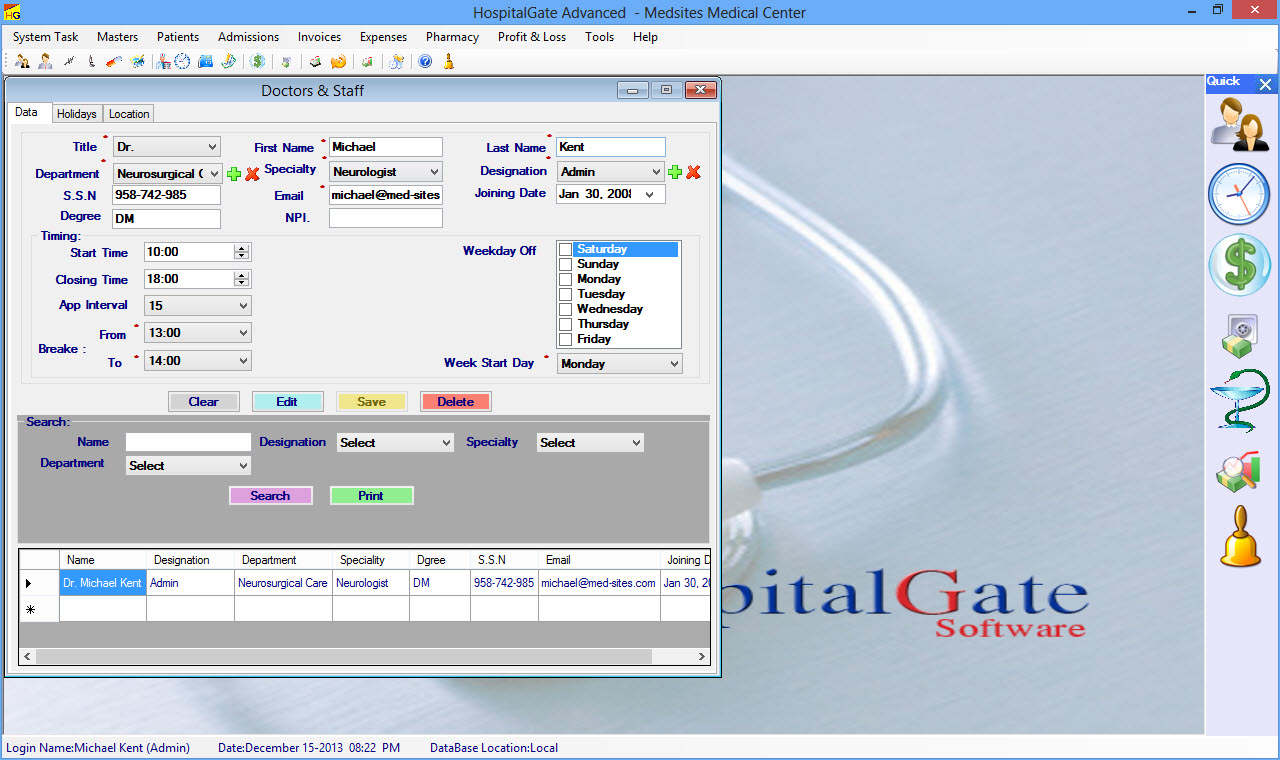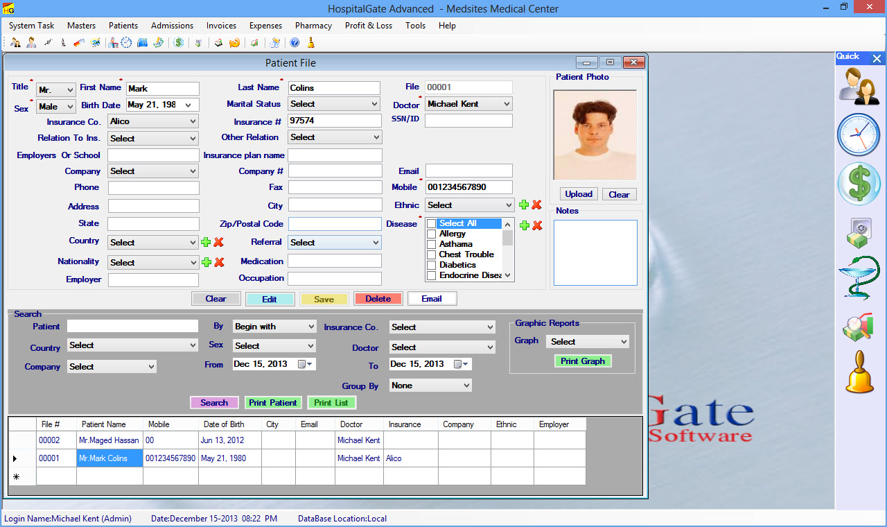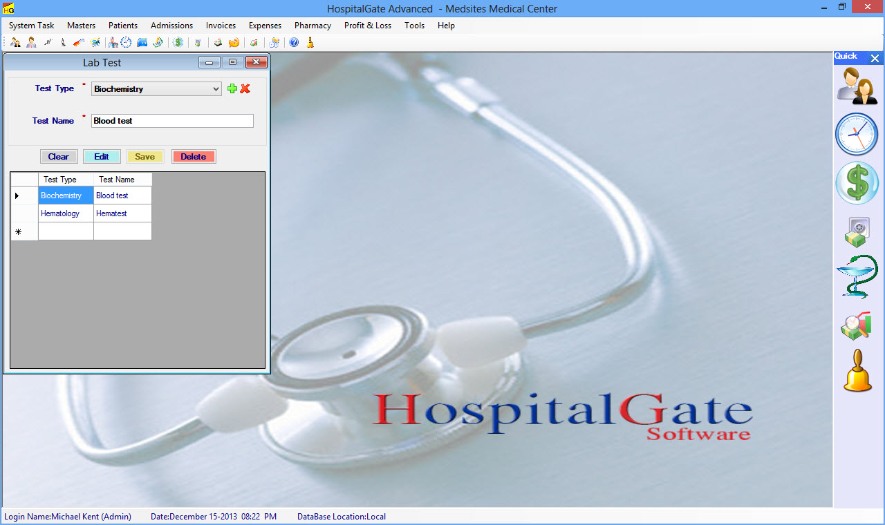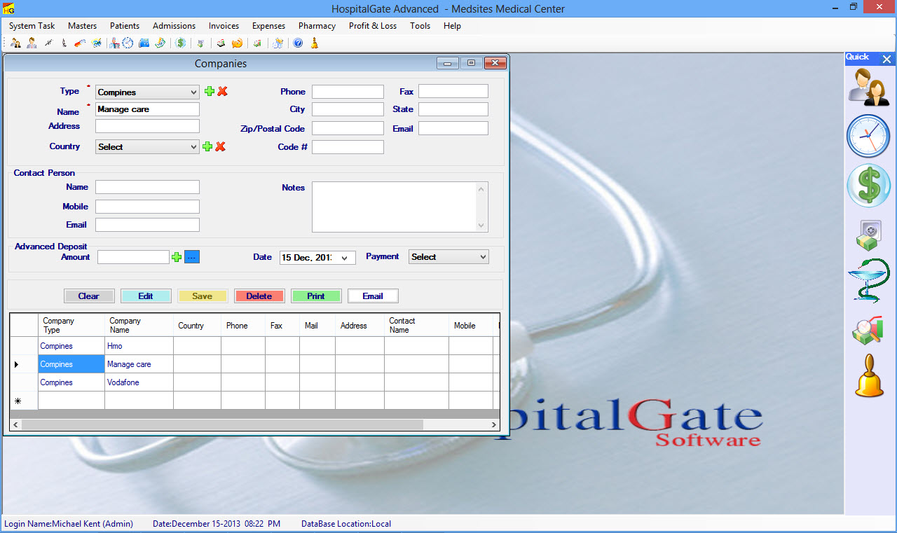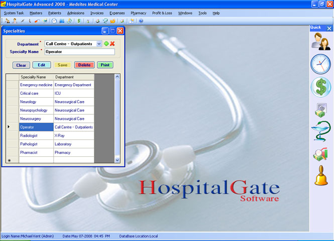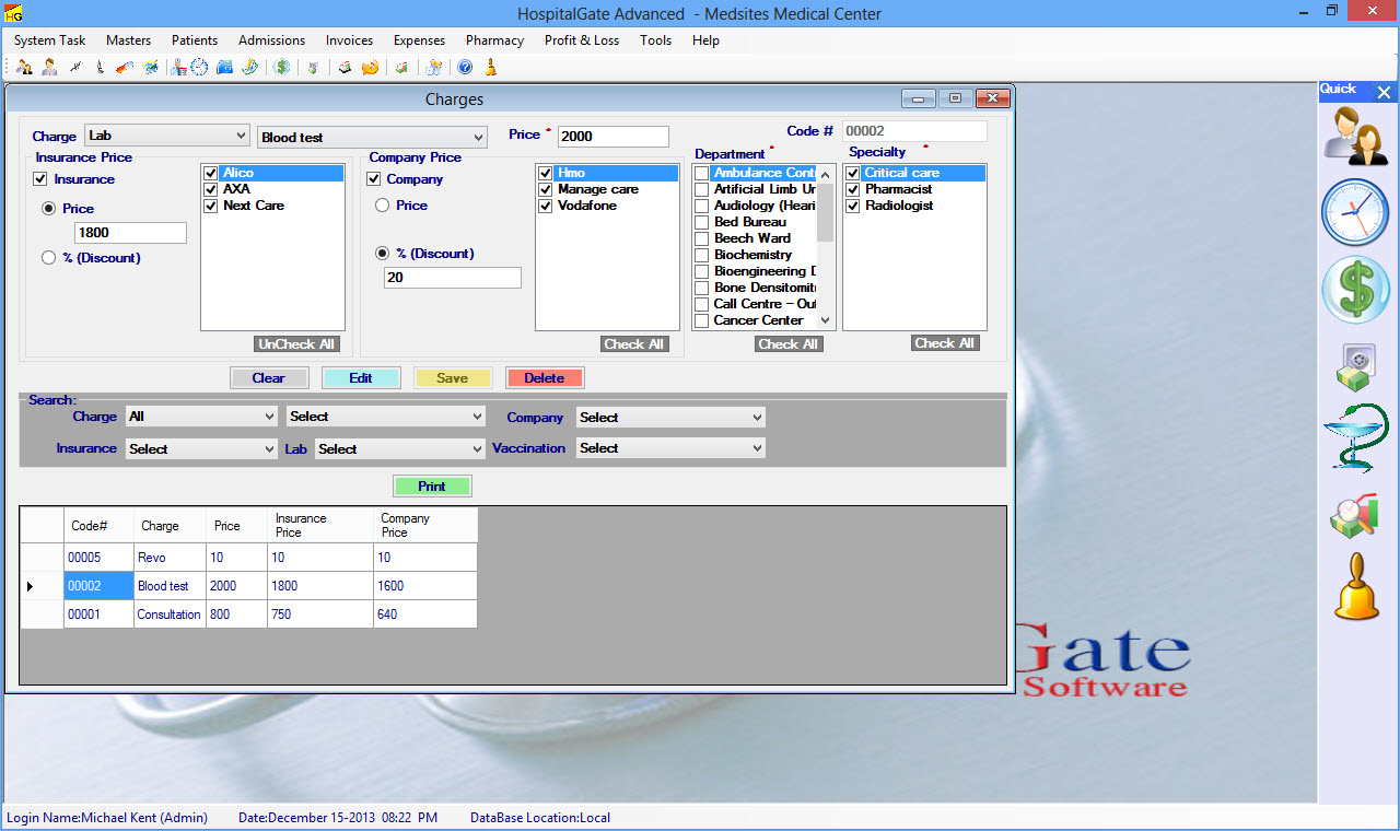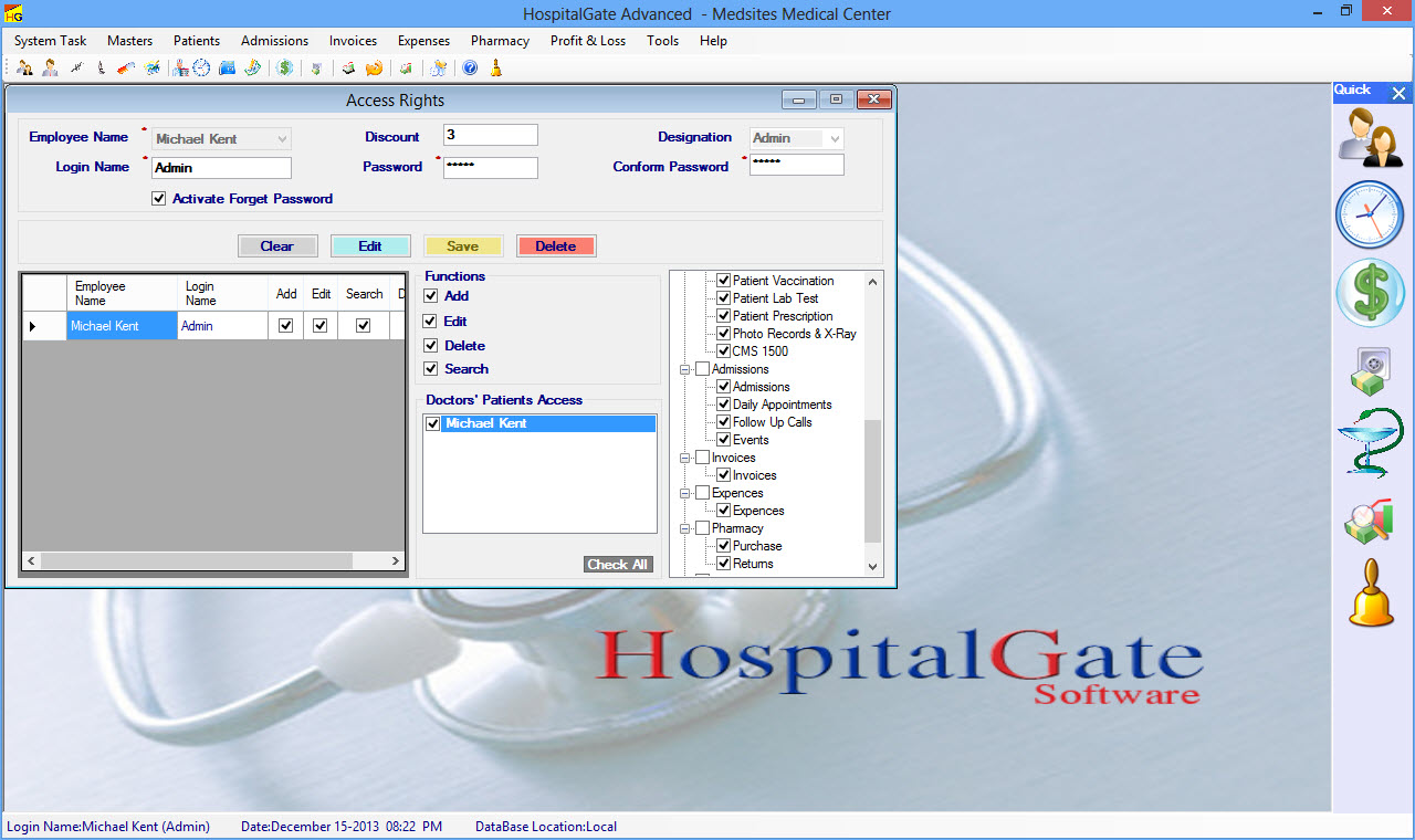 مناسب للمستشفيات الصغيرة والمتوسطة لإدارة السجل الطبي للمرضى الداخليين والمرضى الخارجيين ، الاختبارات المعملية ، كاتب الوصفات الطبية ، جدولة المواعيد ، مطالبات فواتير التأمين ، الفواتير ، النفقات ، المقبوضات ، أوامر الشراء الضريبية والصيدلية ، مع دمج جميع الأدوية في تطبيق واحد يولد 650+ تقارير مخصصة وتقارير الرسم.