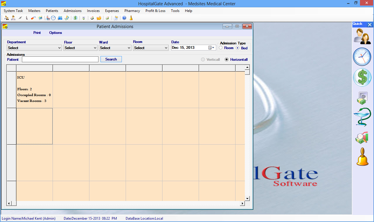 تقدم هوسبتال جيت برنامج المستشفى ، ونظام معلومات المستشفى (HIS) برامج إدارة المستشفى لإنشاء بنية تحتية مشتركة لسير العمل عبر نظام الرعاية الصحية بأكمله من أجل التواصل الفوري وتتبع المرضى والموارد وتدفق المرضى الآلي.