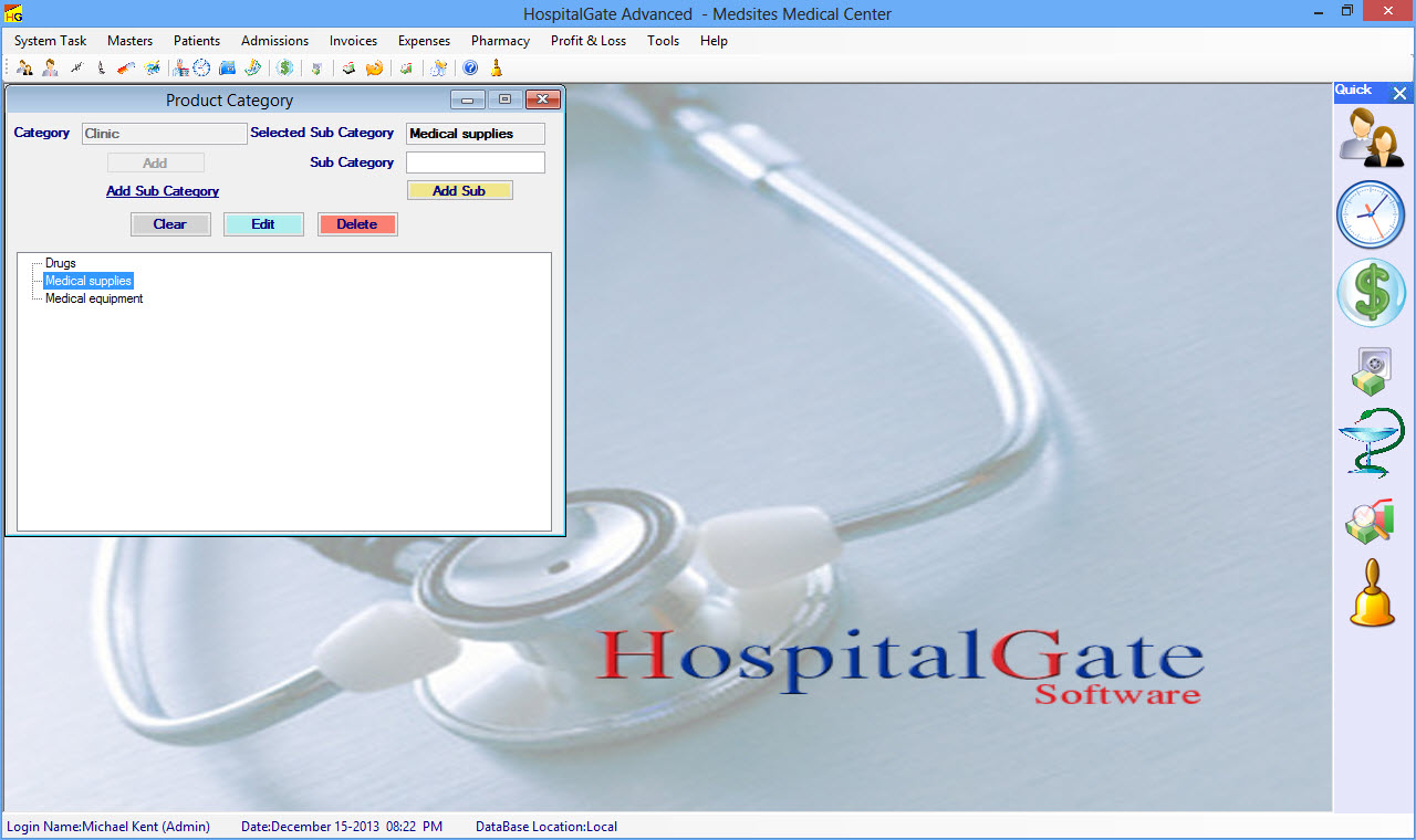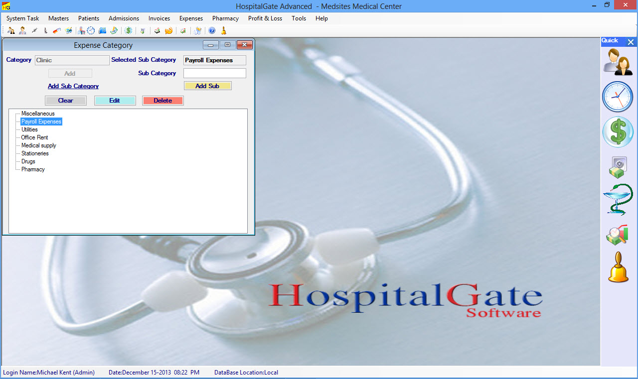 Add, Edit & Delete Practice Expenses / category & sub-category