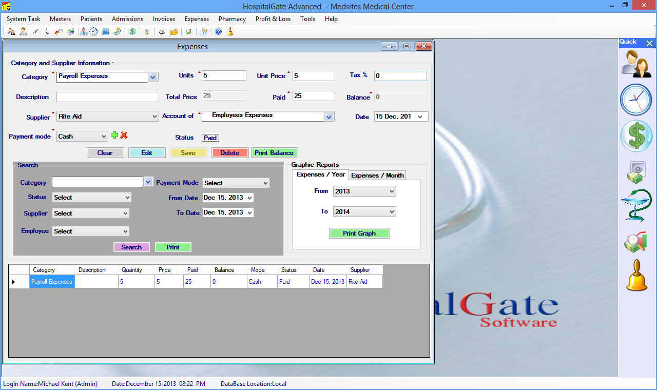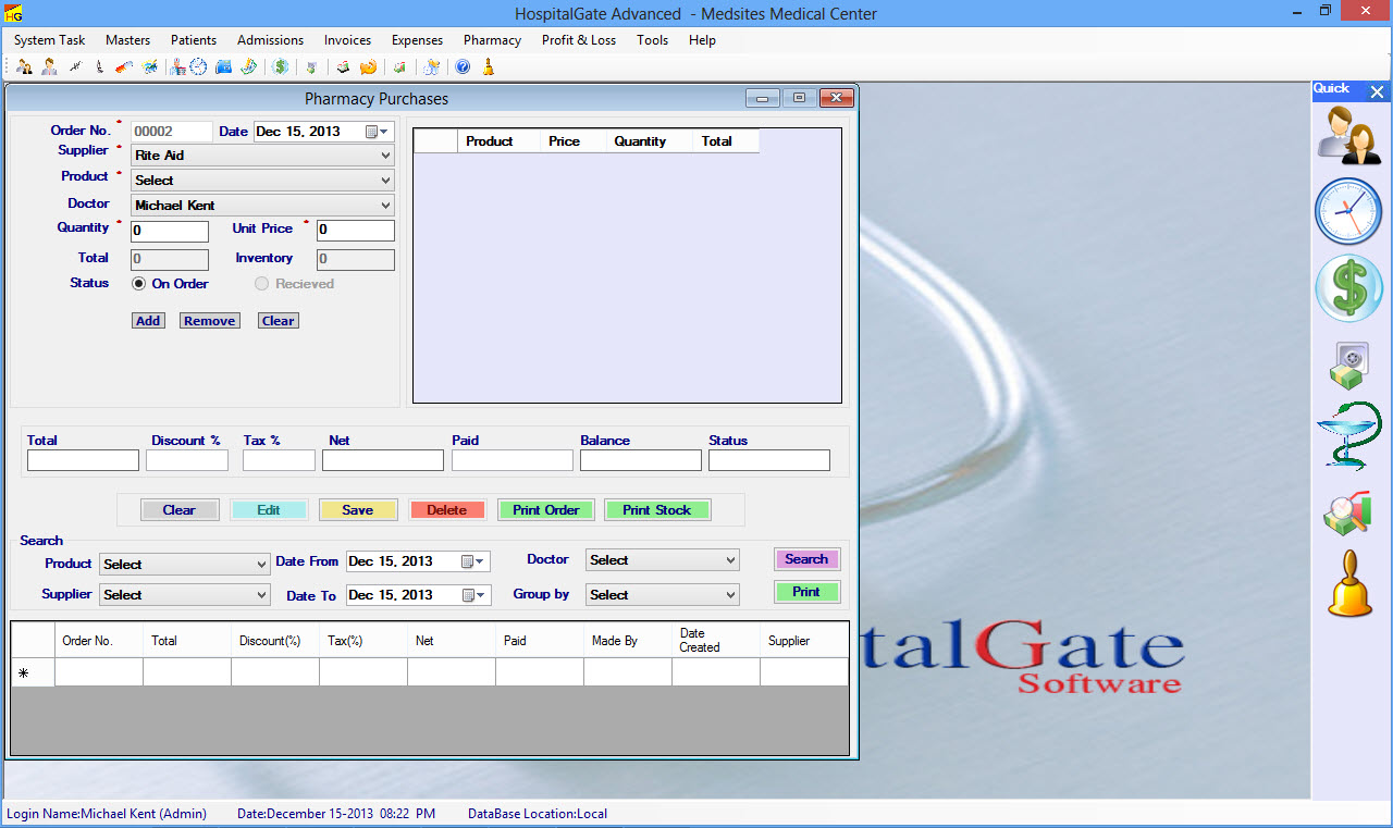 View & Print daily, monthly & yearly Pharmacy Purchase
