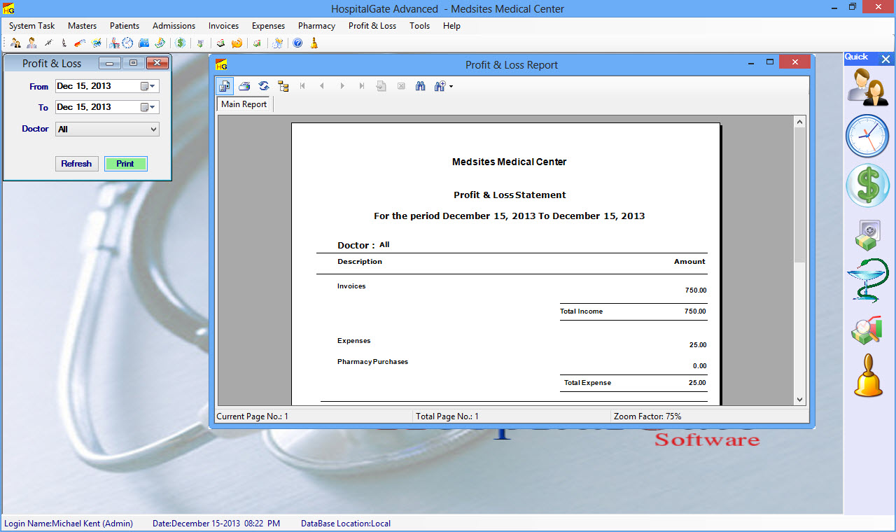 View & Print daily, monthly & yearly doctor Profits & Losses