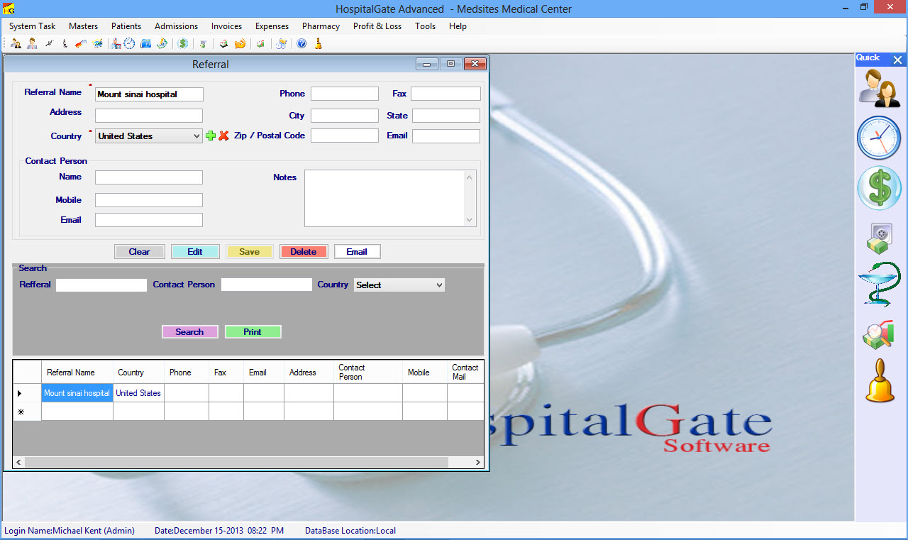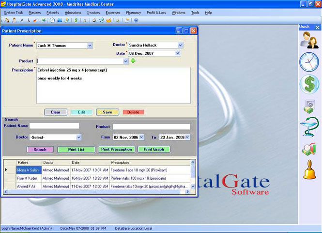 إن هوسبتال جيت عبارة عن نظام معلومات للمستشفيات متعدد المستخدمين على الشبكة برنامج السجلات الطبية الإلكترونية وبرنامج قبول مجاني للمستشفى للمستشفيات الصغيرة التي تحتوي على جميع العناصر المالية والسريرية والتشغيلية لمستشفى يعمل بنجاح.